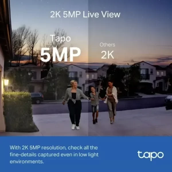 Video en directo 2K 5MP. Con el sensor starlight y la resolución 2K 5MP, no te pierdas ni un detalle incluso con poca luz.