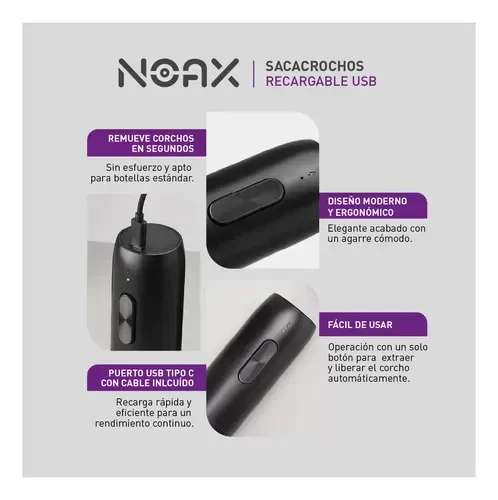 1x Sacacorchos Recargable NOAX