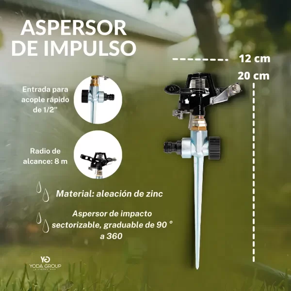 •Aspersor de impacto sectorizable, graduable de
