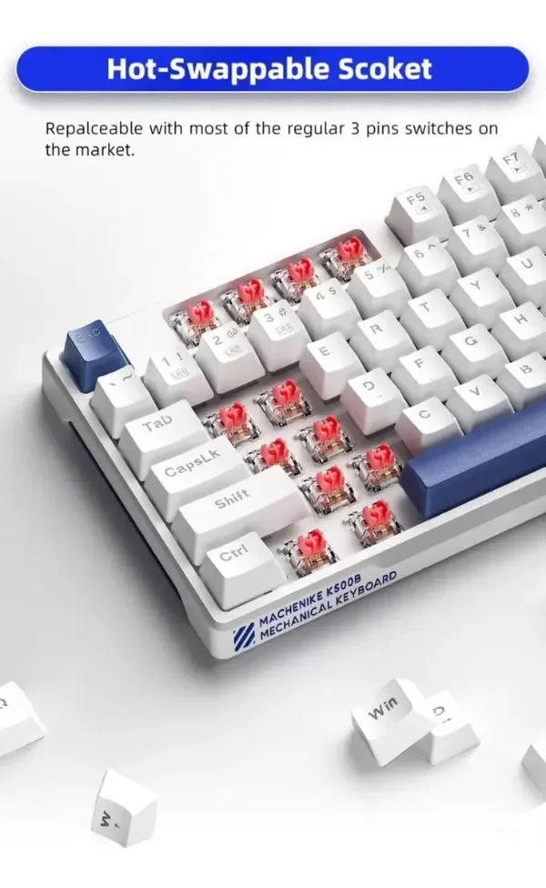 Con el Machenike K500B-B87 QWERTY Switch Red, vas a elevar tu setup a otro nivel, un teclado mecánico de tamaño intermedio, elegante y versátil, pensado tanto para gamers exigentes como para quienes escriben mucho pero no quieren renunciar al estilo y rendimiento.