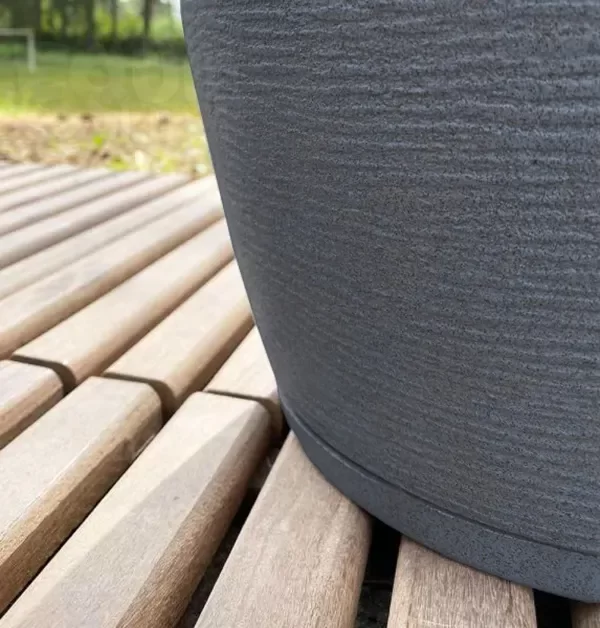 Ventajas - Incluye plato de recolección agua - Construido en polietileno, material altamente resistente a la presión e impacto - No genera residuos peligrosos en su fabricación y es de bajo impacto ambiental - Apto para intemperie, resistente al agua, humedad y rayos UV - No se reseca - Simple de limpiar - Resistente a químicos - Alta durabilidad - 100% Reciclable: No hay mezcla de materiales en la fabricación Altura: 45 cm Diámetro de la boca: 40 cm Diámetro de la base: 32 cm Ancho máximo: 46 cm Capacidad: 58 L Peso: 1,9 kg NOTA: el color y brillo del producto puede tener una mínima diferencia por la luz que proyectamos al momento de realizar las fotos. * No incluye Planta *