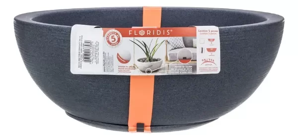 Maceta Floridis Plástico Bowl Premium Grande 44x19 Cm Simil Piedra Plato Gris