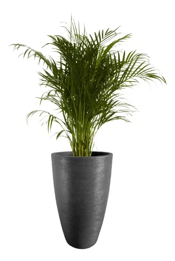Ventajas - Incluye plato de recolección agua - Construido en polietileno, material altamente resistente a la presión e impacto - Apto para intemperie, resistente al agua, humedad y rayos UV - No se reseca - Simple de limpiar - Resistente a químicos - Alta durabilidad - No genera residuos peligrosos en su fabricación y es de bajo impacto ambiental - 100% Reciclable: No hay mezcla de materiales en la fabricación Textura simil piedra Altura: 65 cm Diámetro de la boca: 35 cm Diámetro de la base: 25 cm Ancho máximo: 41 cm Capacidad: 65 L Peso: 1,9 kg NOTA: el color y brillo del producto puede tener una mínima diferencia por la luz que proyectamos al momento de realizar las fotos.