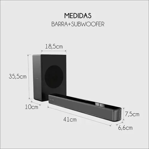 · Medidas subwoofer: 10 cm × 18,5 cm × 35,5 cm