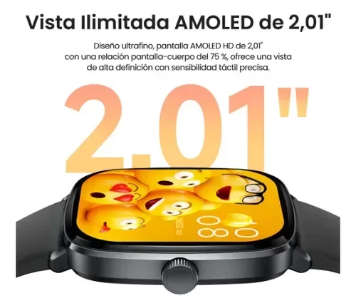 Pantalla curva AMOLED grande de 2,01 pulgadas, admite 2 modos siempre encendidos, alta frecuencia de actualización de 60Hz, 410*502 DPI.