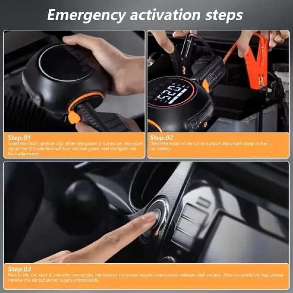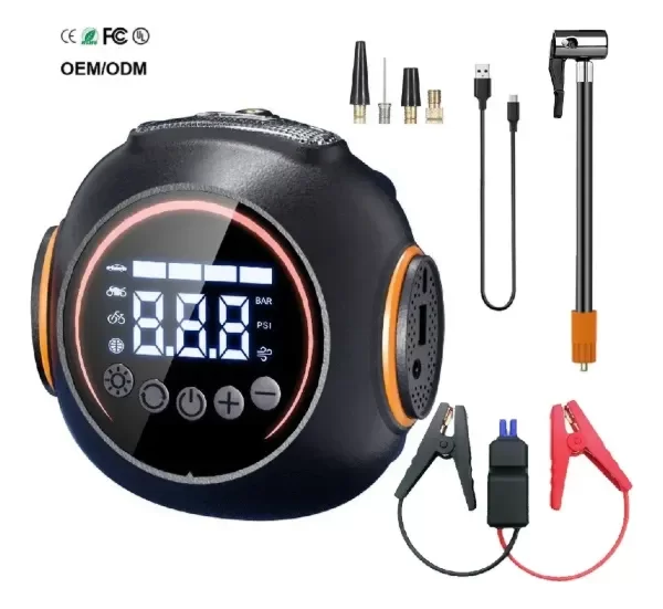 ARRANCADOR DE AUTO - COMPRESOR DE AIRE - POWERBANK - Jumper Starter GJZ0353 100% ORIGINAL. El equipo GJZ0353 combina varias funciones esenciales en un solo dispositivo: arrancador de batería, compresor de aire, power-bank y luz de emergencia. Pensado para quienes quieren estar preparados ante cualquier imprevisto en la ruta, es una herramienta muy versátil tanto para autos como motos, bicicletas o inflables. Con su pico de corriente de 1000A permite arrancar motores de 12 V ideal para autos, camionetas o motos Su compresor de aire integrado, con capacidad de inflado rápida, permite poner en presión cubiertas, ruedas, neumáticos, pelotas o inflables en minutos. Además, su batería interna también puede funcionar como banco de energía, útil para cargar tu celular u otros dispositivos cuando lo necesites. Caracteristicas: Funciones: arrancador de batería 12 V, compresor de aire/inflador, power-bank, luz de emergencia / linterna integrada Corriente pico de arranque: 1000 A Batería interna: 8000 mAh (4 celdas de 2000 mAh) Salida USB: 5 V / 2 A (para cargar dispositivos externos) Presión máxima de inflado: 150 PSI Material de la carcasa: plástico resistente