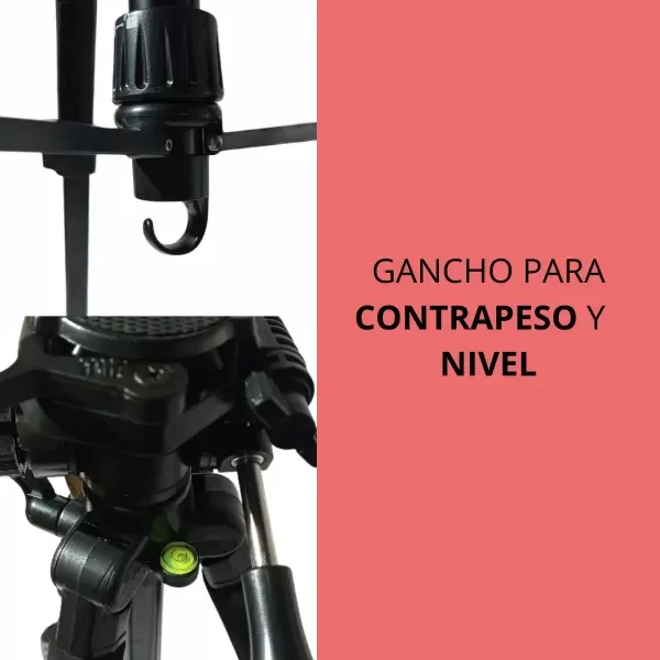 MaterialAluminioDispositivos compatiblesCámaras, NivelláserTipo de cabezalDe bolaTipo de rosca1/4”Altura máxima150 cmAltura mínima50 cmPeso máximo soportado5 kgCantidad de secciones3FlexibleNoIncluye nivel de burbujaSíIncluye cabezalSíIncluye estucheSí